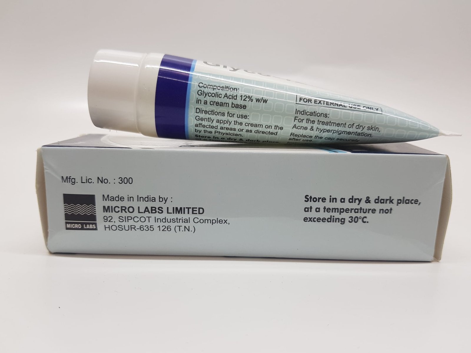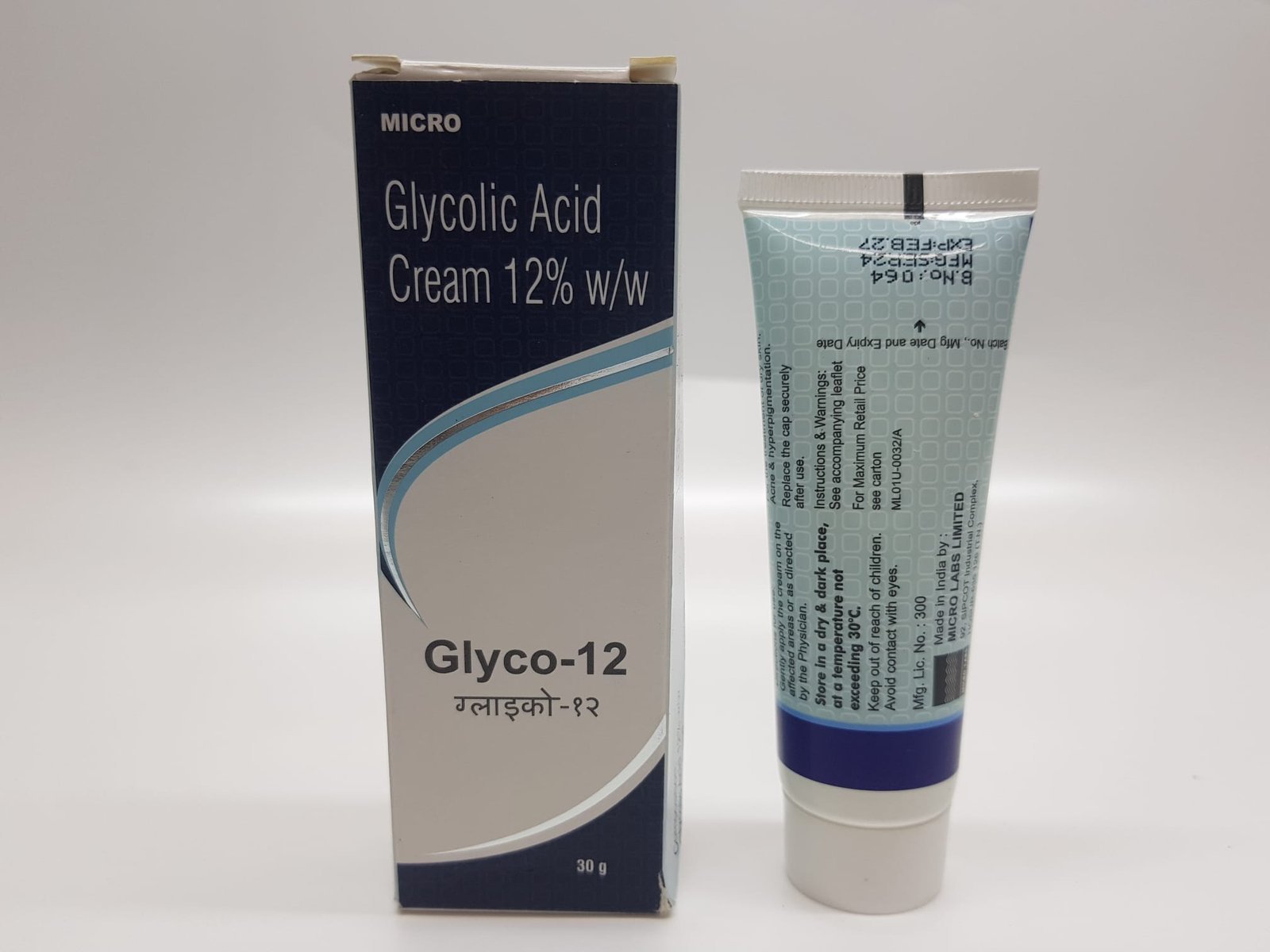 Glyco Acid 12% Cream by Micro Labs is a dermatologist-recommended formulation designed to deeply exfoliate, renew, and visibly brighten the skin. Infused with 12% glycolic acid, this powerful alpha-hydroxy acid (AHA) cream helps eliminate dead skin cells, unclog pores, fade dark spots, and smoothen rough texture—promoting a clearer, even-toned, and youthful appearance.