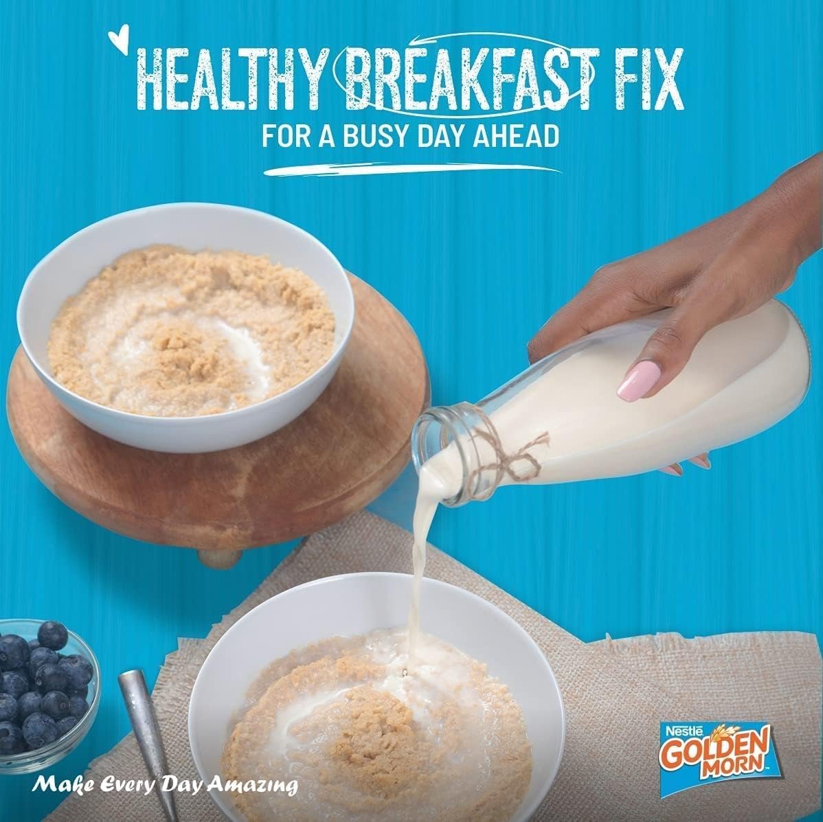 Made from whole maize and fortified with iron, calcium, and vitamins, Golden Morn is more than just a cereal – it’s a trusted source of energy and health. Whether enjoyed with cold milk or warm water, it delivers a satisfying, smooth, and natural taste that everyone loves.