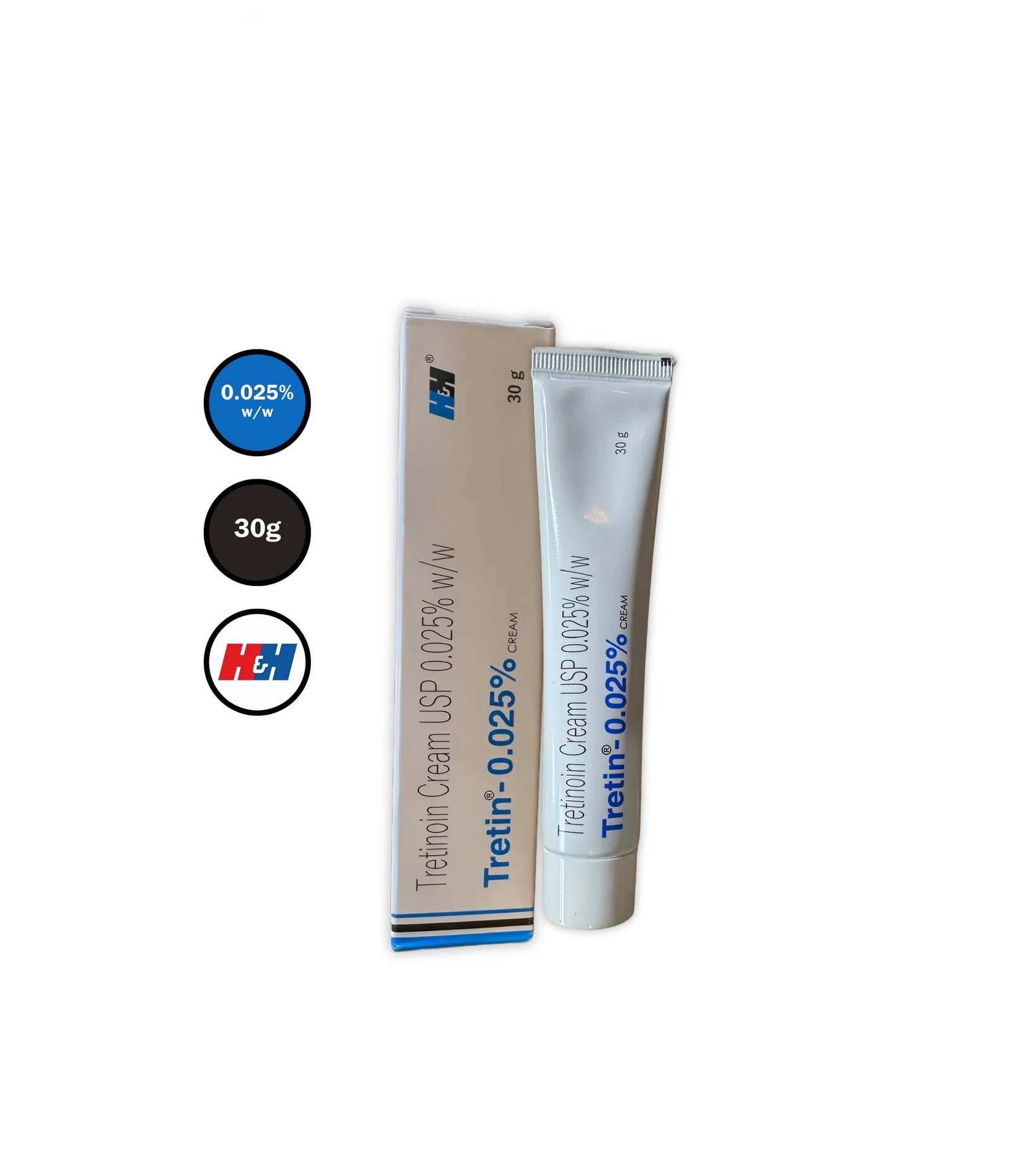 Tretinoin Cream USP 0.025%, Tretin 30g is a dermatologist-trusted formula that helps clear acne, reduce wrinkles, smooth rough skin, and fade dark marks with steady use.